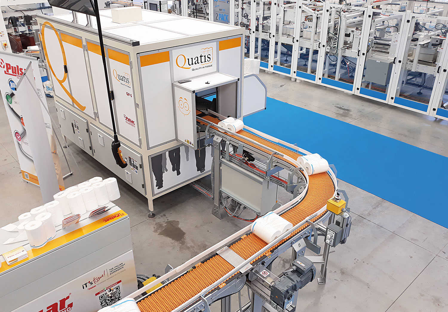 This also gives the opportunity to adequately improve the upstream machine settings, thereby increasing the efficiency of the line and consequently, production capacity. QUATIS machines are available in two models. The first can inspect the products, collecting and processing data for overall production analysis. The second has the benefit of an ejection unit, which inspects and analyses production data as well as automatically ejecting non-conforming products. QUATIS for both wrapped and unwrapped products are currently stand-alone machines that allow them to easily be installed in new or existing converting lines. Pulsar also offers remote support service for 6-24 months after the machine is purchased in case the format needs to be changed, new recipes need to be created and for any training required for employees.