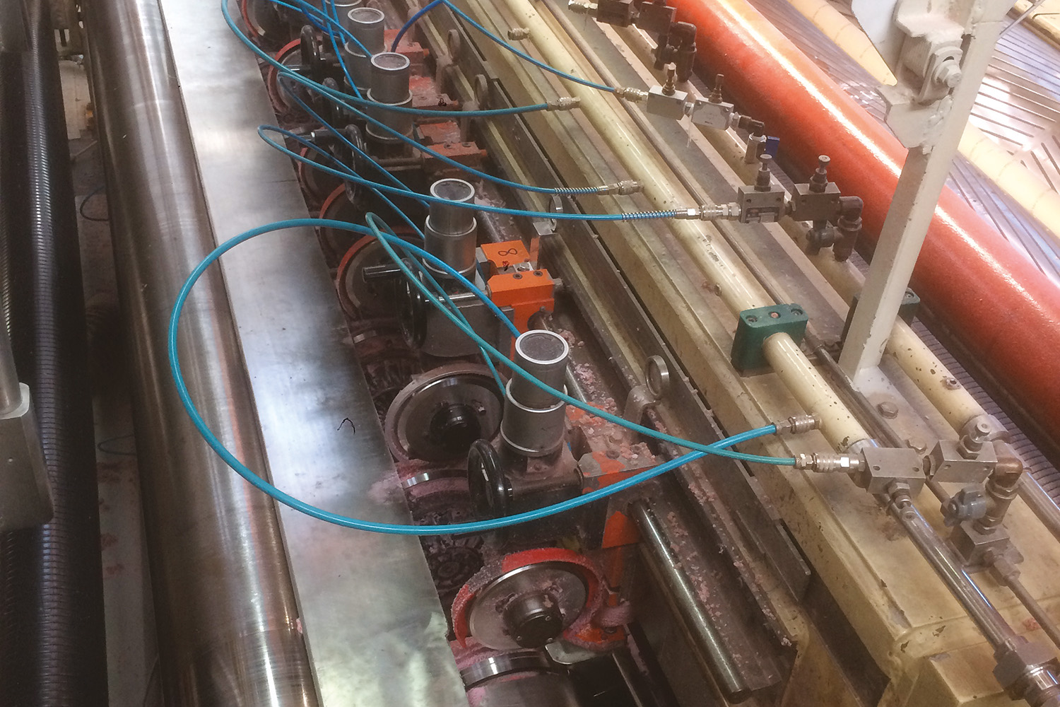 The project was developed by Tecno Paper with the help of a 3D design software, in order to make the installation as quick as possible for obvious production reasons checking in advance all the elements involved in the modification, from the mechanical components to the electrical and pneumatic wiring. We supplied to the customer an evaluation risk document, related to the new slitting system. In addition, we supplied even the necessary documentation needed for the integration process on the existing customer’s machine. Tecno Paper therefore did the installation of the new slitting system, having at its disposal specialized technicians who work in the paper mill every day, taking care of the maintenance on all the machines involved in the processes of paper production. Thanks to the complete set of special instruments available, such as laser aligner and theodolite, the new unit was installed in a very short time.