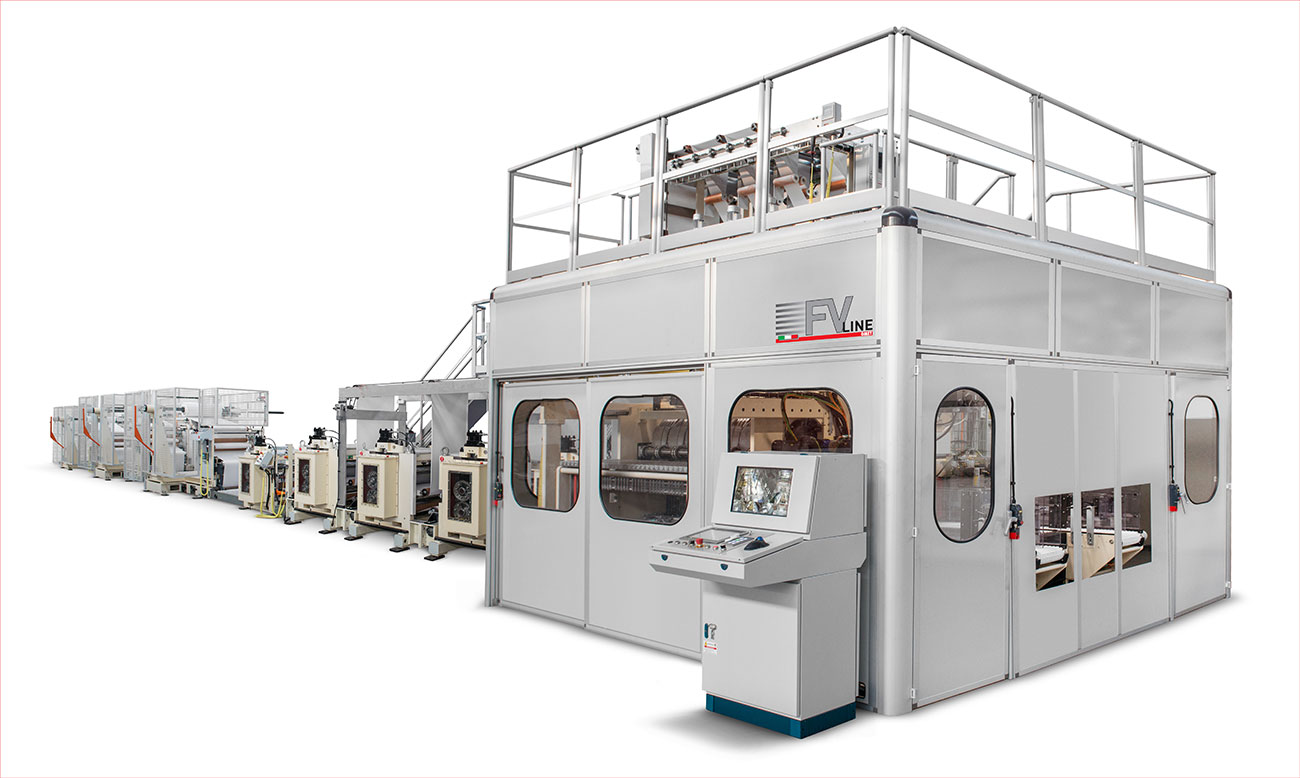 Thanks to its modular design, the FV Line can integrate different finishing groups (embossing, folding, printing, etc..), thus offering extensive customization to suit customers’ needs. The machine is equipped with a servomotor for each folding cylinder and servomotors controlling the vacuum valves.
