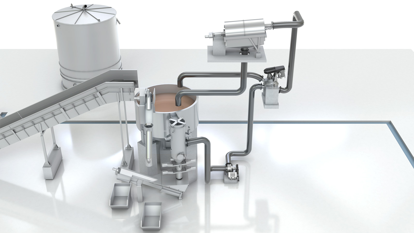 Every component of BluePulpLC contributes to more efficient and reliable resolution. Compared to conventional LC pulpers, energy consumption can be reduced by up to 25 percent with the eccentric IntensaPulper IP-R. The improved IntensaPump conveys the highly contaminated stock flow from the IntensaPulper IP-R to the IntensaMaXX disposal machine largely free of blockages, enabling energy savings of up to 30 percent and reducing wear at the same time. IntensaMaXX allows for maximum contaminant contents, while the special shape of the housing suppresses the formation of spinnings. The IntensaScreenDrum screening drum washes out rejects very efficiently, thanks to sophisticated spray pipes, and minimizes fiber losses.